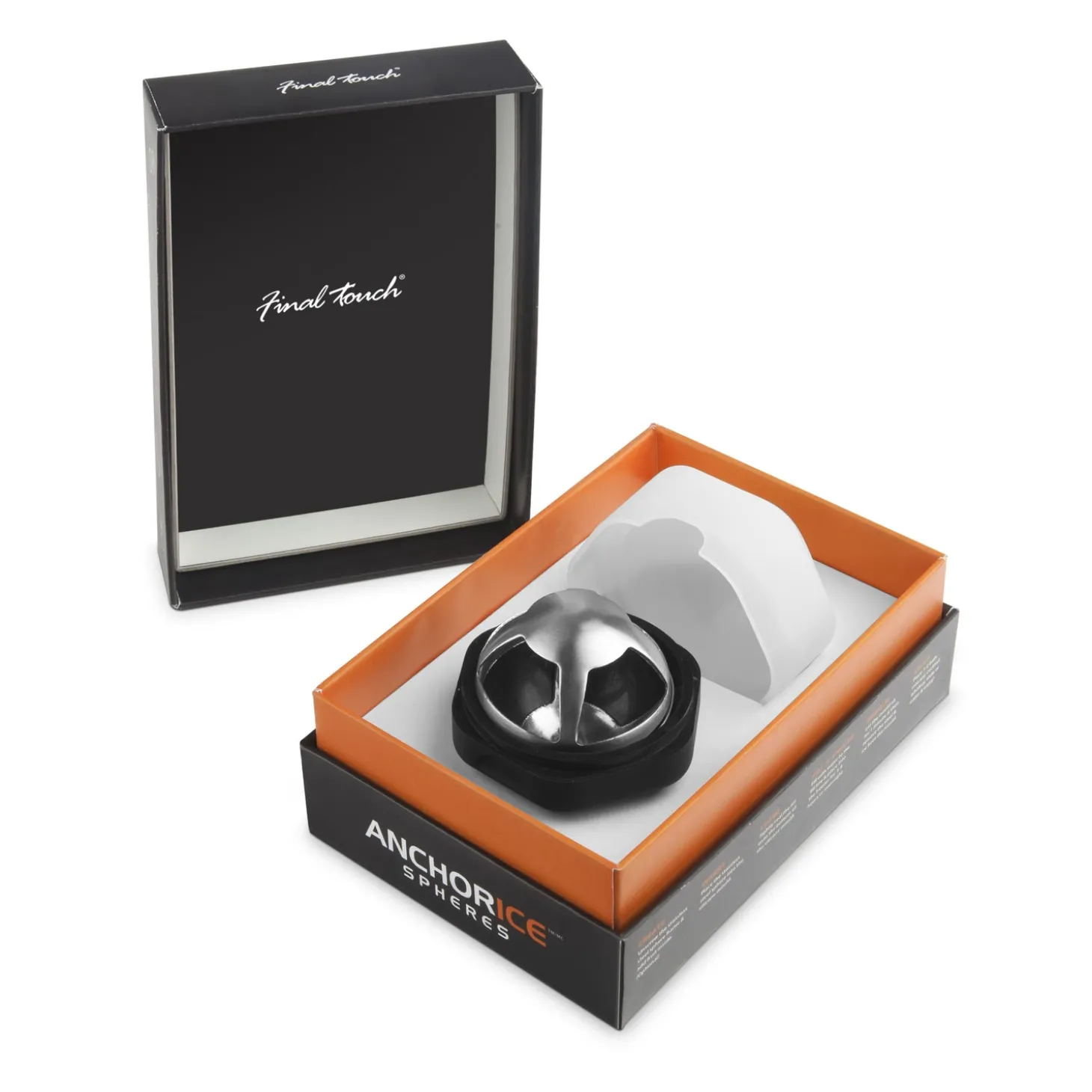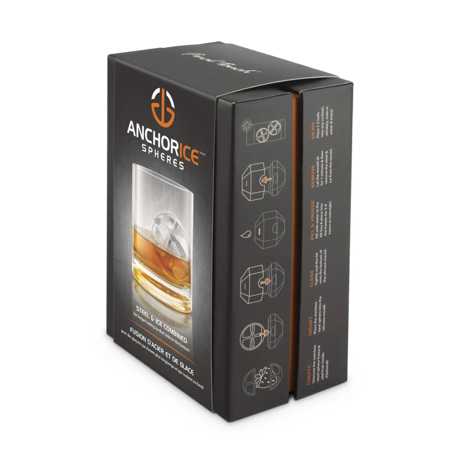 Add an impressive display of style and innovation to your drinks. AnchorICETM helps chill drinks without quickly diluting their distinctive flavours because the larger 2″ size melts much slower than traditional ice cubes. The stainless steel frame frozen inside the ice allows it to sink to the bottom & away from your lips while drinking.