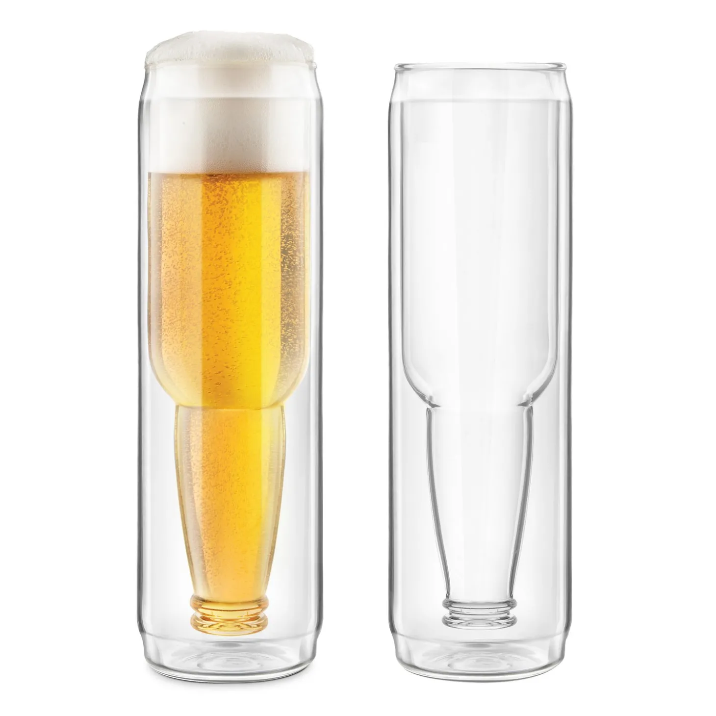 Bottoms Up – Double-Wall Beer Can Glass Set – Set of 2