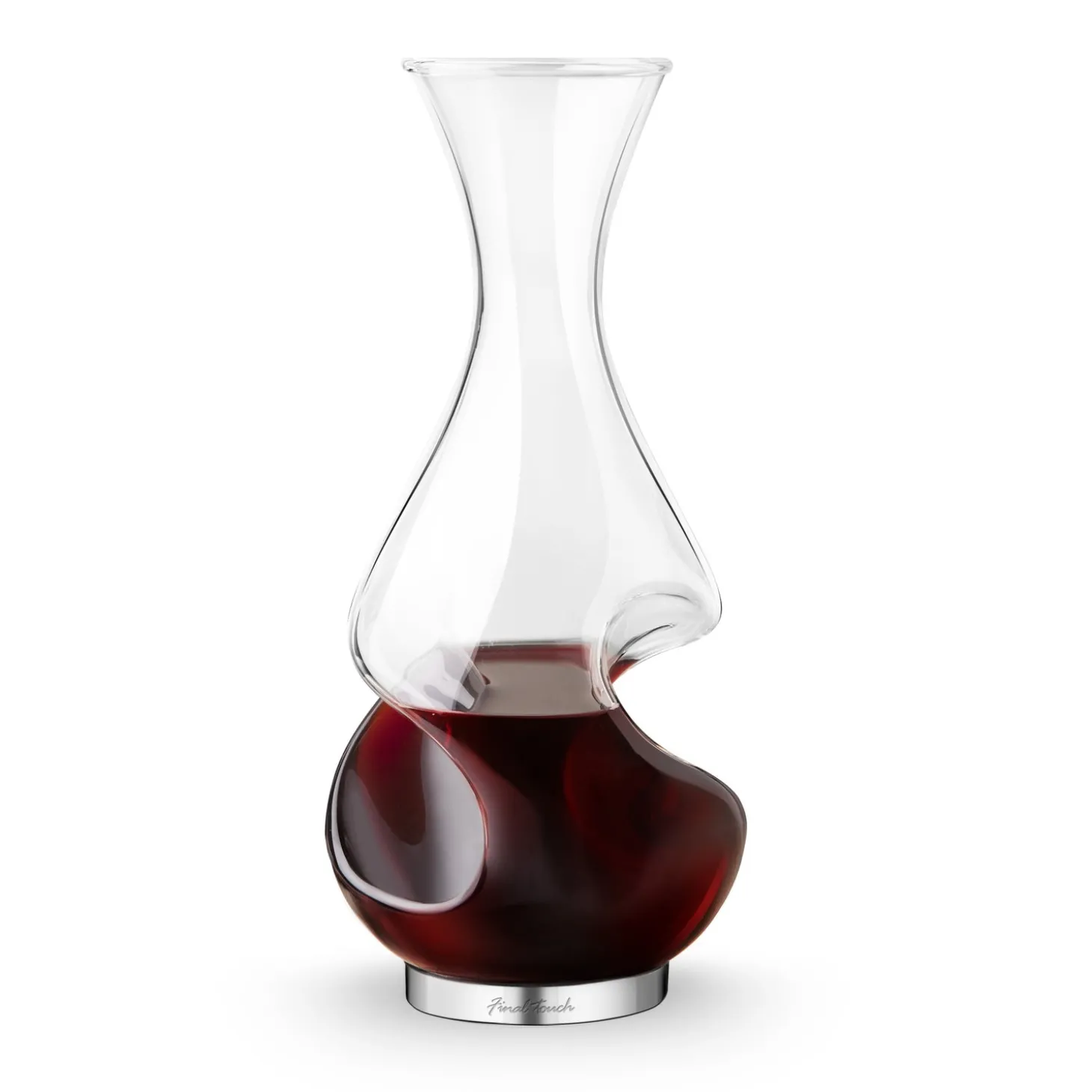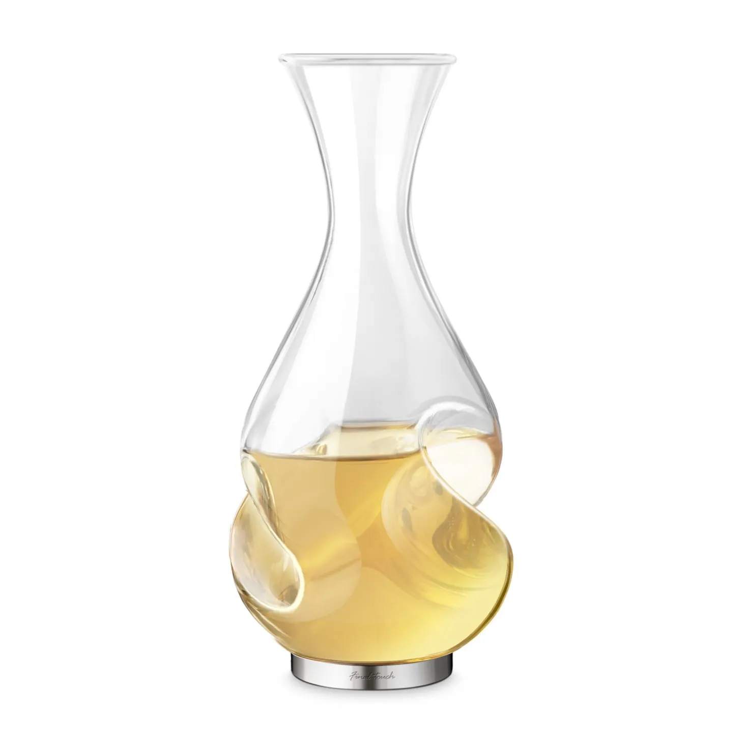 Pouring in or out, the curves of this decanter gently disperses the wine providing superior aeration & oxygenation.”