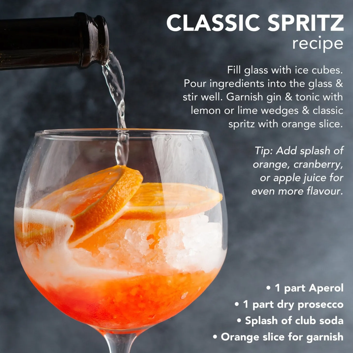 Specifically designed for gin or spritz cocktails this large balloon shaped glass helps to trap aromas for improved taste. This unique shape also helps to visibly distinguish gin and comfortably hold a large 13.5 oz / 400 ml cocktail with plenty of room for ice.
