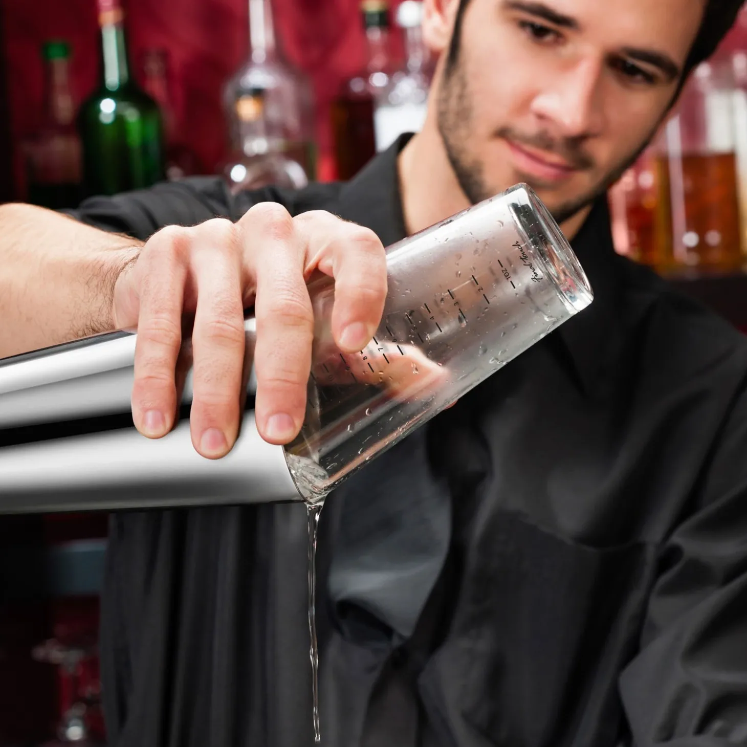 Mixing glass has imprinted measurement markings that are calibrated up to 14 ounces & 425 milliliters.