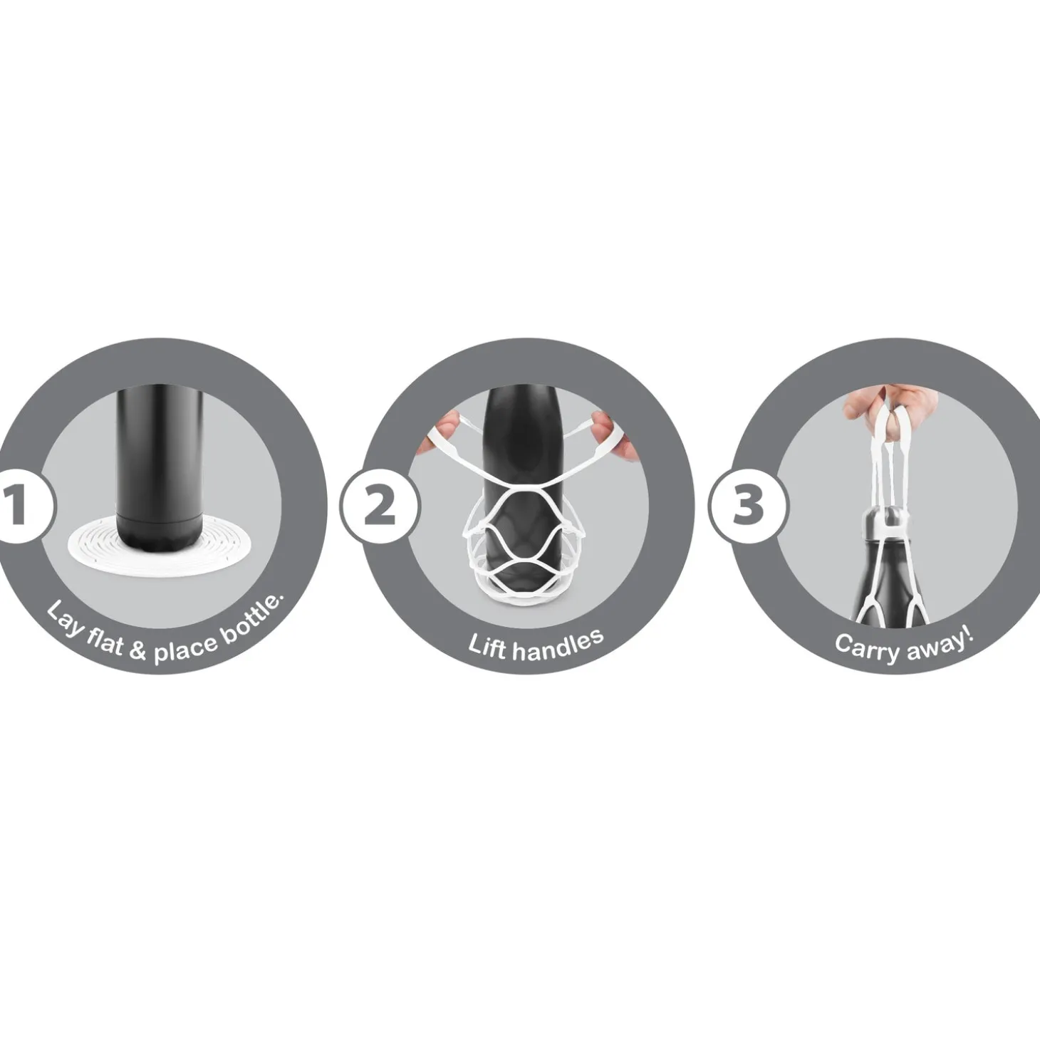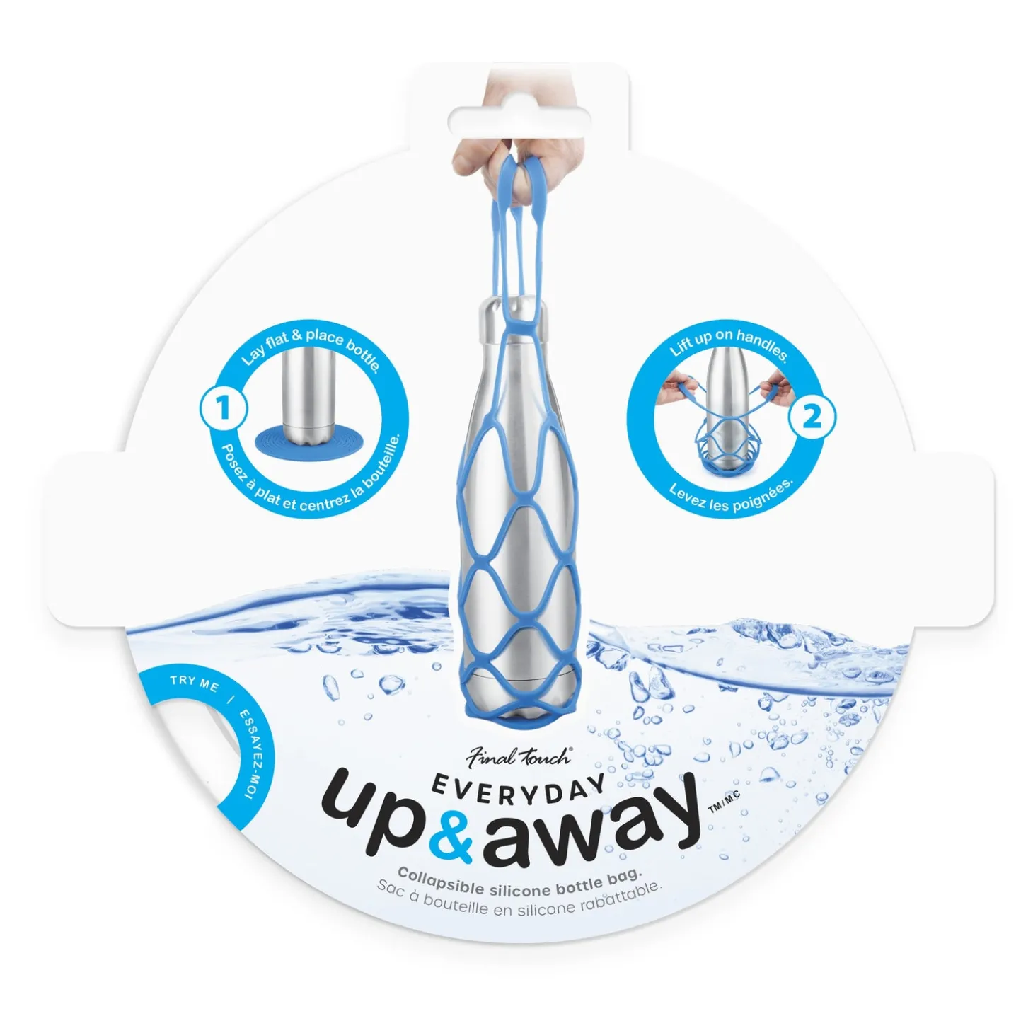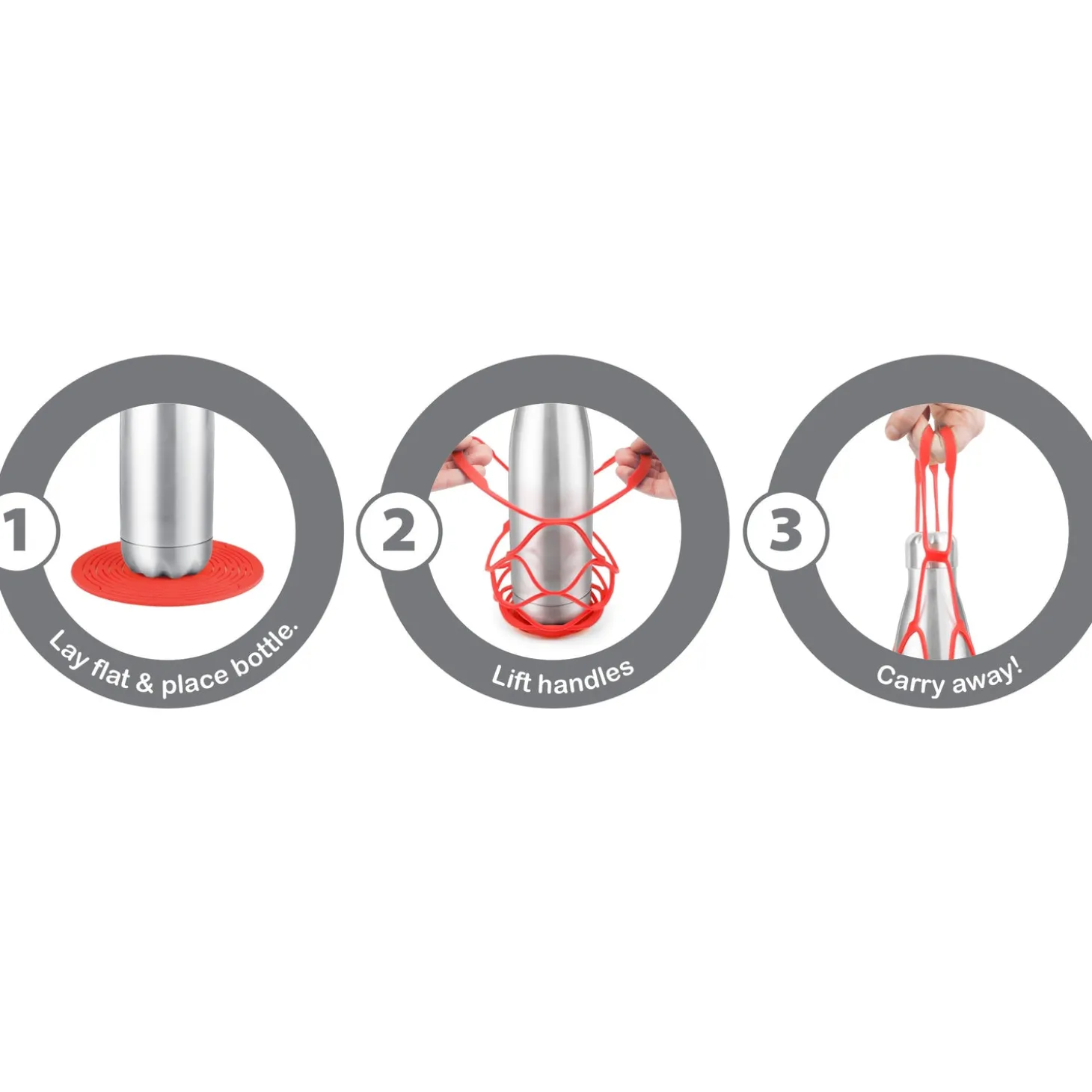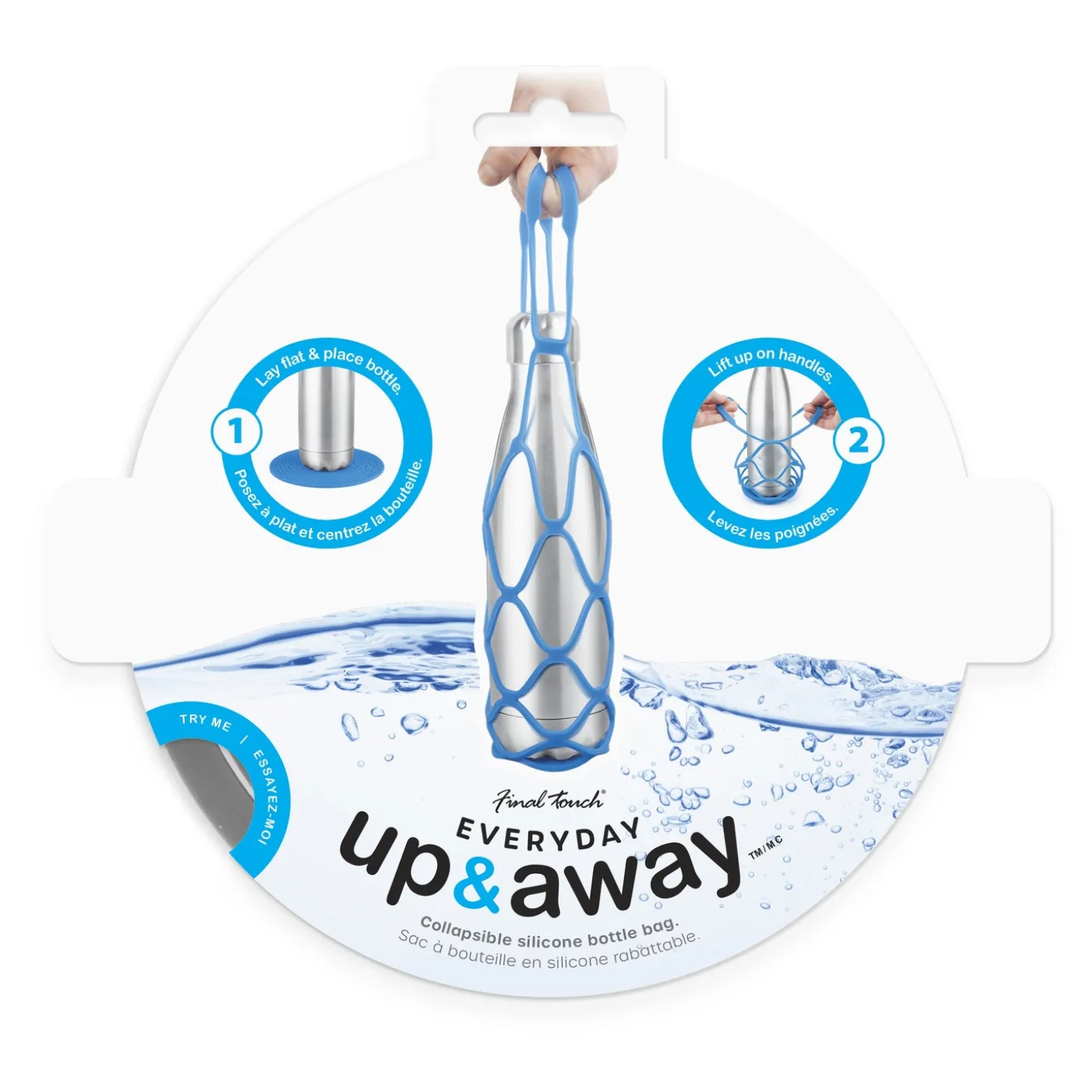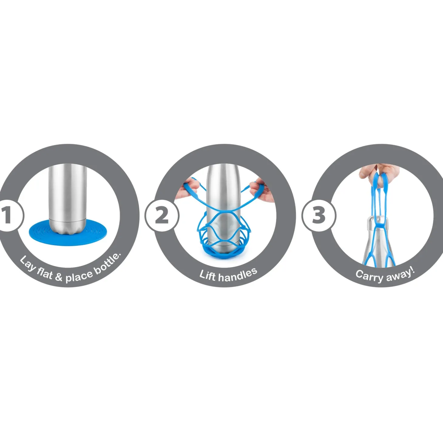 The Everyday Up&Away collapsible silicone bottle bag makes it easy to carry bottles with you, whether it be at the gym, while shopping, around the house or even to and from office meetings. Once expanded, the handles allow you to carry multiple items while keeping one hand free or you can clip onto a bag to be completely hands free.