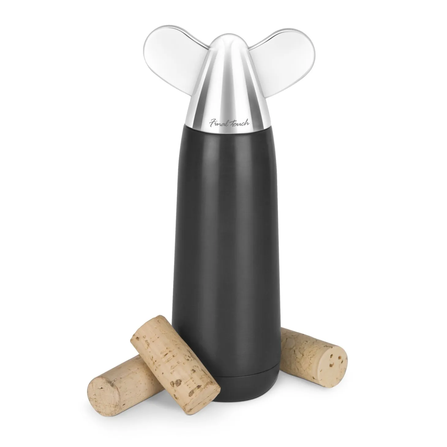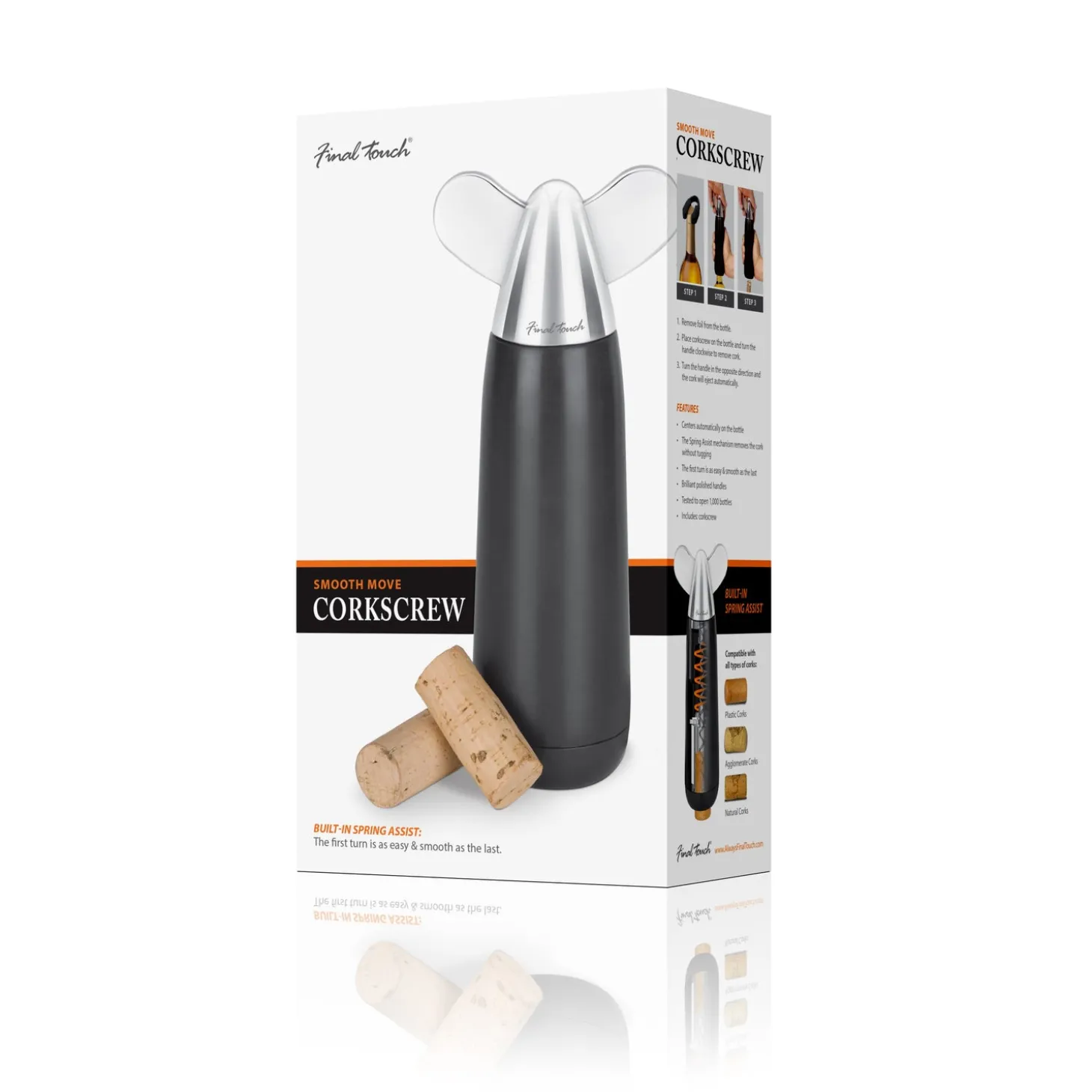 Easily uncork with Spring Assist! Just place on the bottle, turn the top wings and the first turn will be easy as the last. The unique Spring Assist mechanism applies pressure to the cork and removes the cork without tugging.