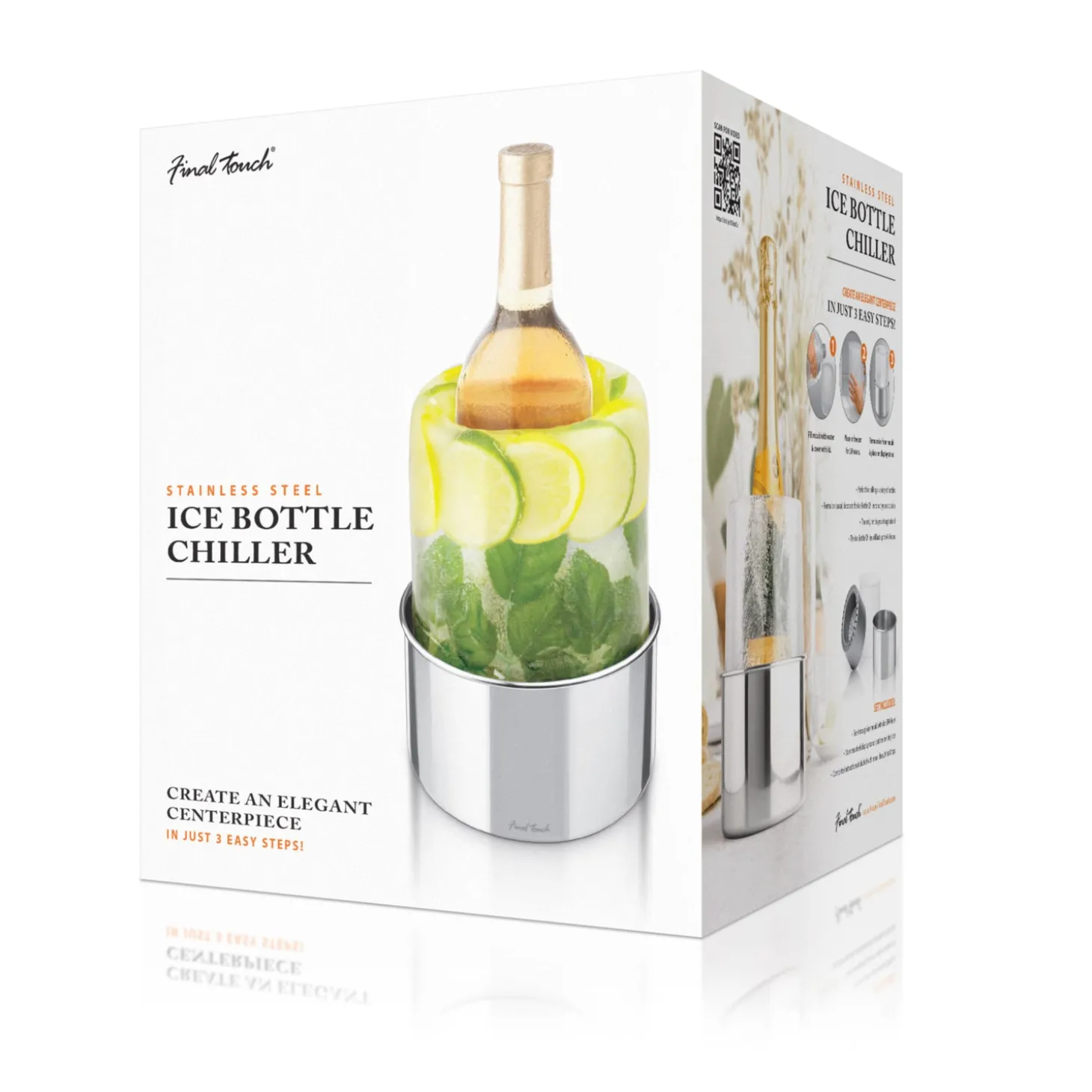 The Final Touch Ice Bottle Chiller is the perfect addition to your special events. Perfect for chilling bottles and great as a romantic candle holder. Simple to use, just add water and create a conversation piece, or if you feel creative, add your decoration of choice for a stunning one of a kind centerpiece.