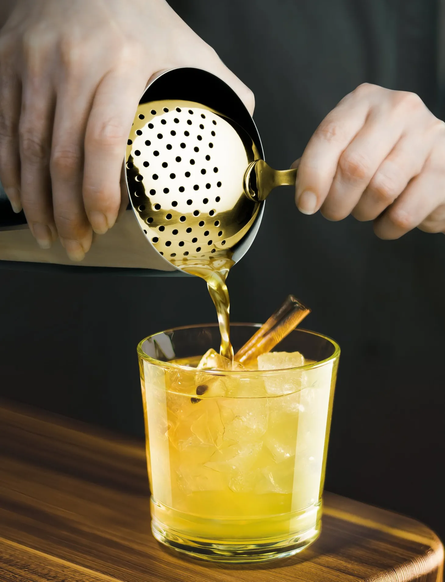 Strains pulp, ice, seeds, fruit & herbs from cocktails when mixing.