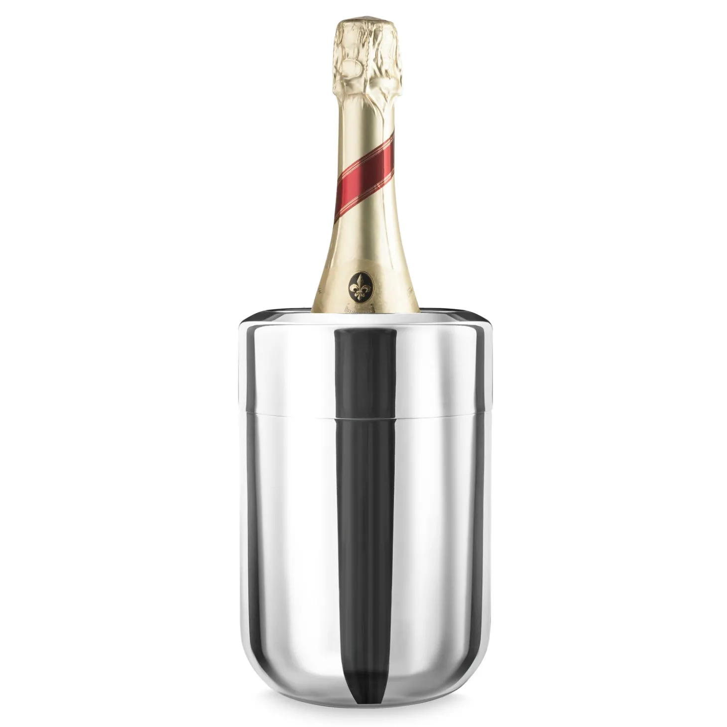 Keeps pre-chilled bottles cold for up to 3 hours without the mess of ice and water from traditional coolers Commercial grade 304 stainless steel with mirror finish exterior Fits one standard 750ml (25oz) wine bottle or Champagne bottle Includes four removable non-toxic gel freezer packs “