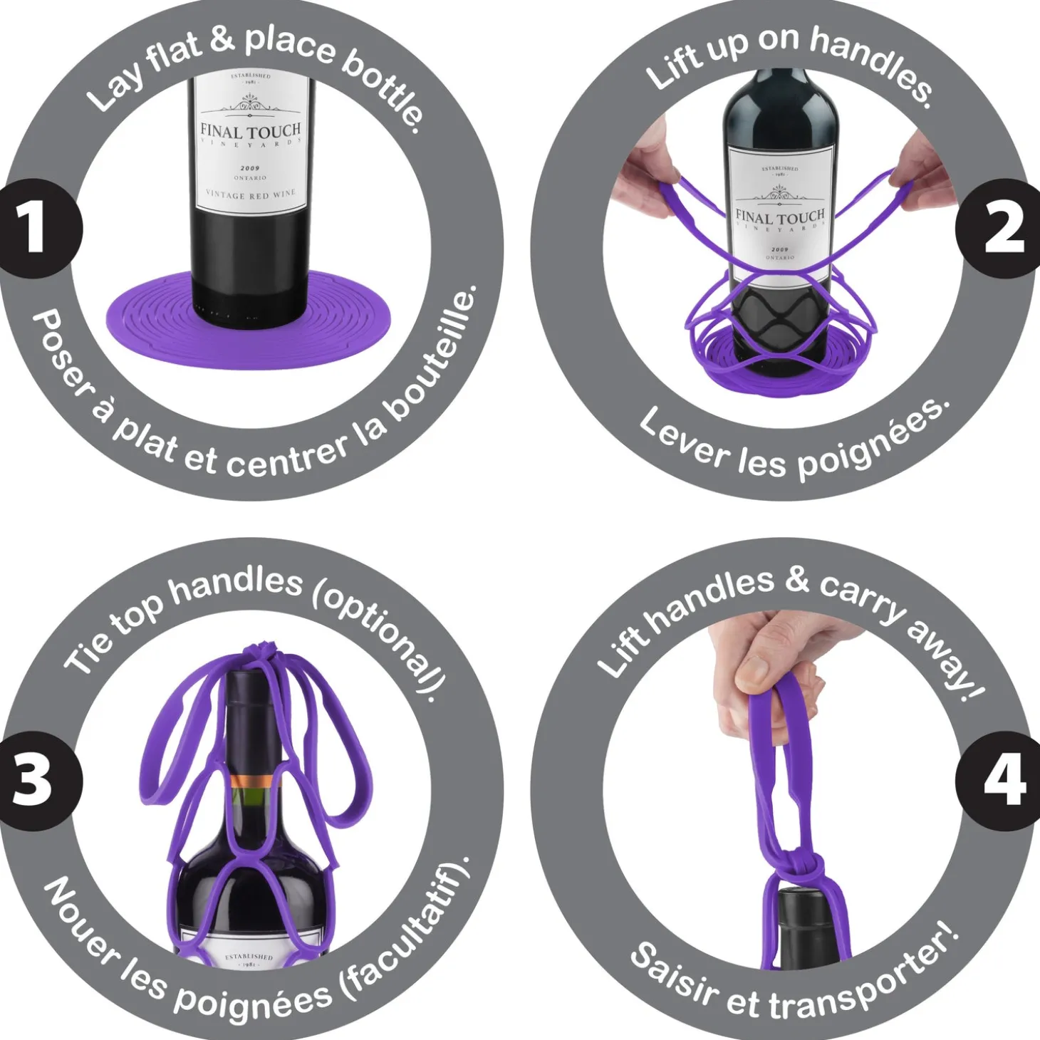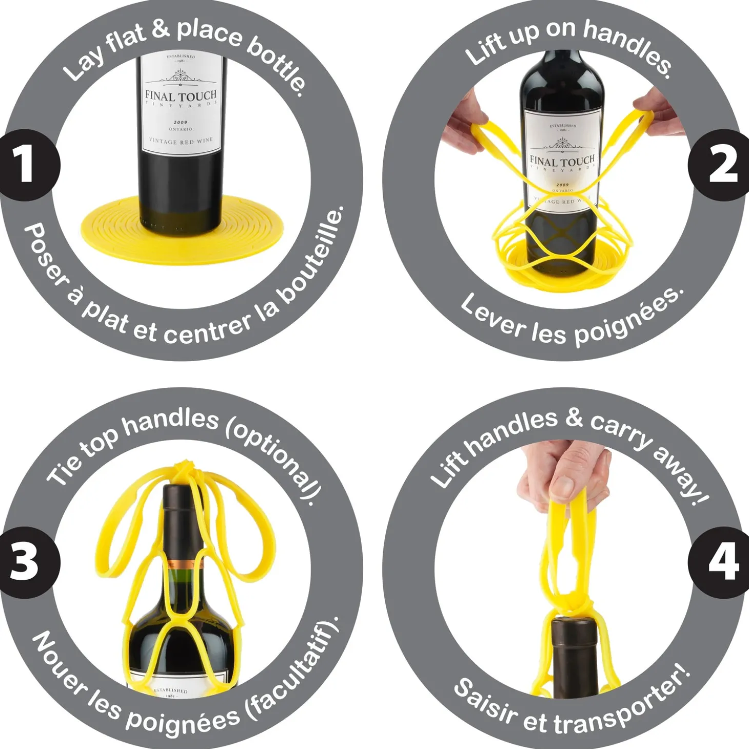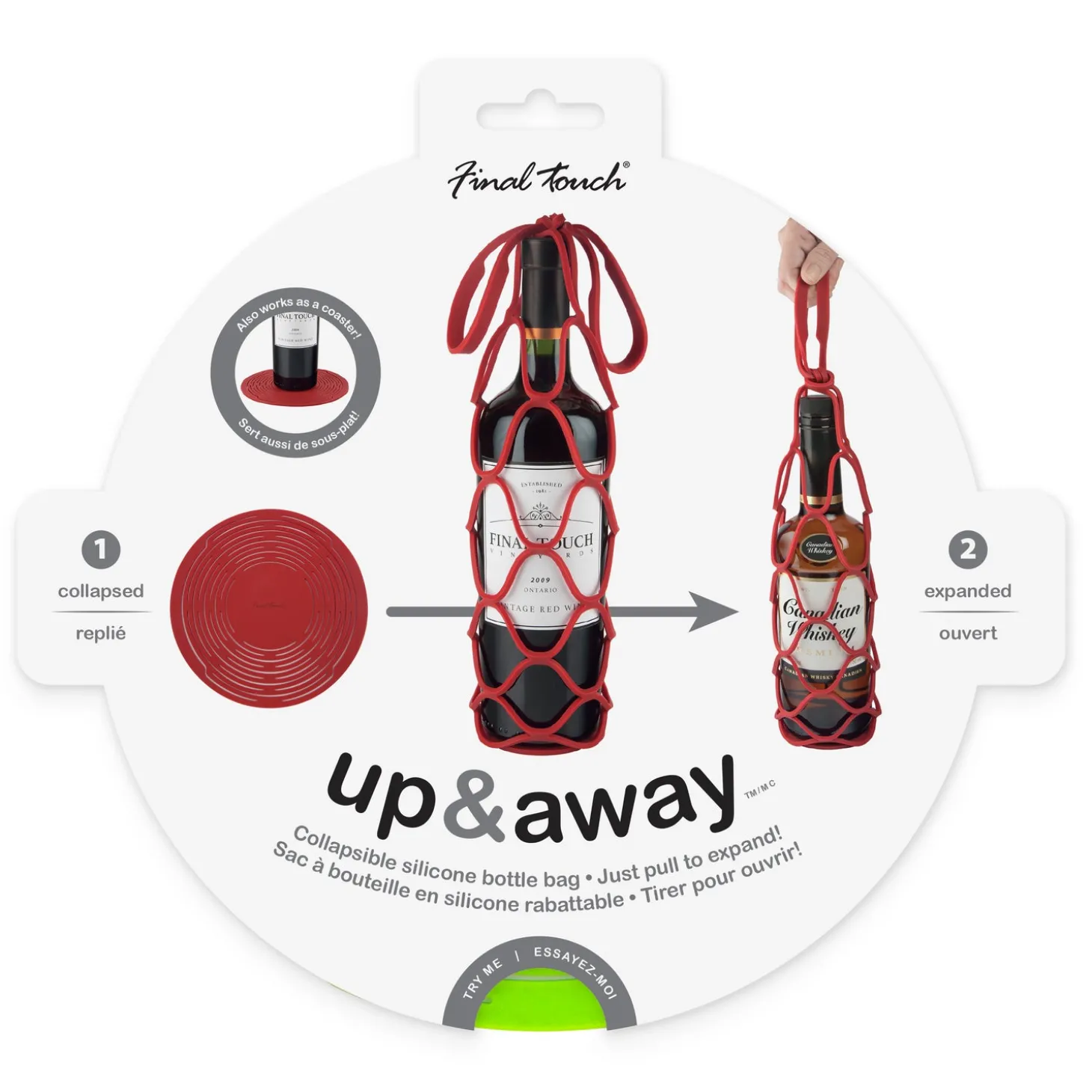 The Up & Away Collapsible Silicone Bottle Bag is the extremely compact & eco-friendly way to carry bottles. Use it to carry wine, liquor and soda bottles for a great alternative to paper or plastic bags. The soft BPA-free & certified food-grade silicone helps to protect the bottle and also can be used as a coaster or pot trivet.